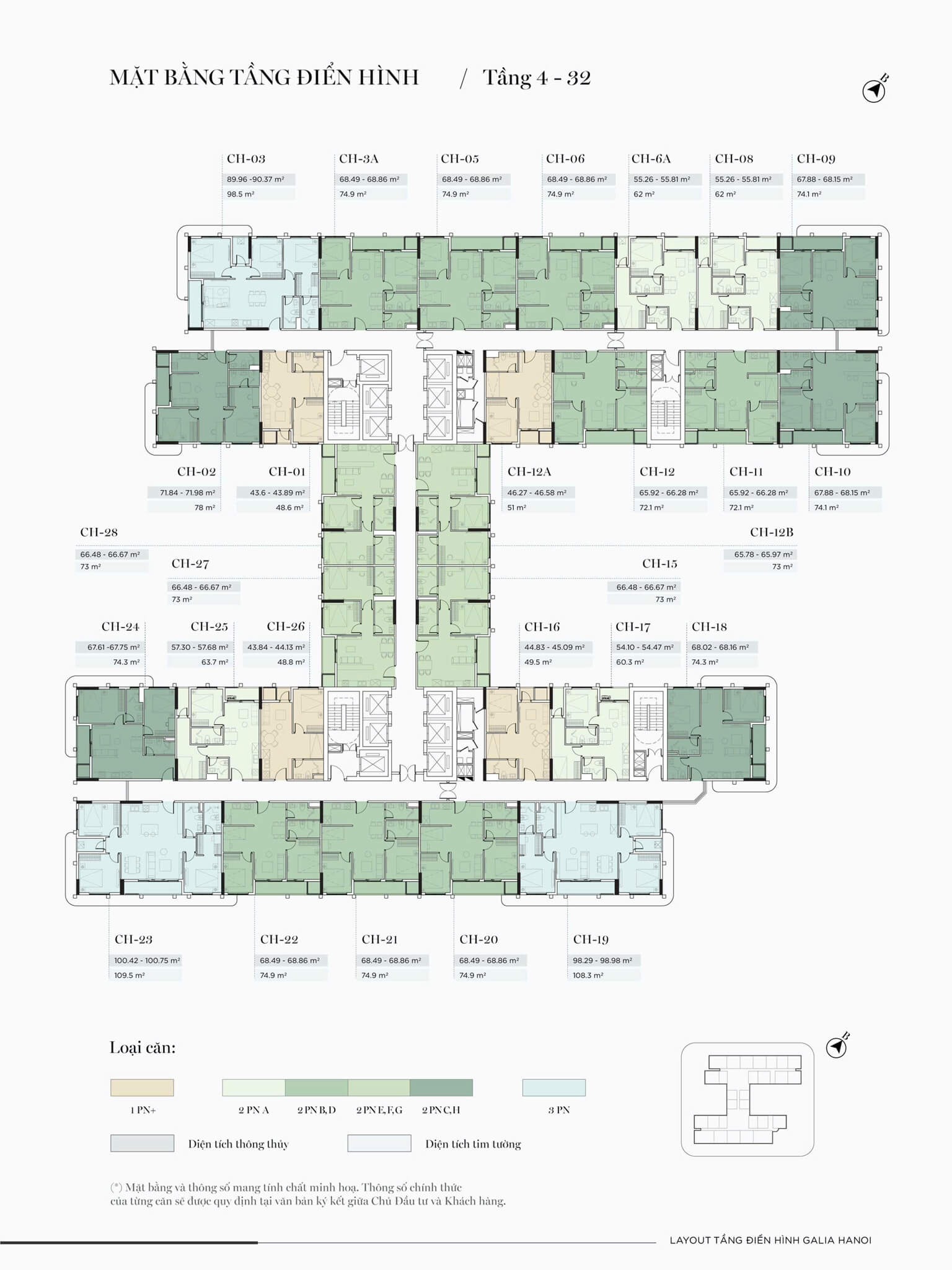 Diện tích căn hộ Galia Hanoi Yên Sở Hoàng Mai